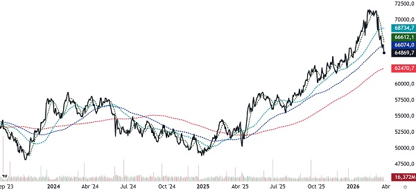 Tomando en cuenta esta reciente volatilidad, es oportuno señalar que el soporte en 65,600 puntos (cercano a la media de 200 días) ha sido superado (-1.2%), y dada las condiciones actuales, esperamos ahora que inicie un proceso de consolidación a la espera de evaluar nuevos niveles en el corto plazo. En ocasiones previas, el índice mando señales de recuperación tratando de retomar los 67,500 puntos; sin embargo, este movimiento se pausado momentáneamente.